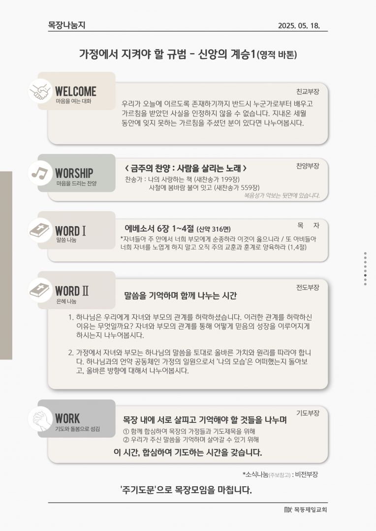 [2025 상반기 11호] 2025년 5월 18일 목장나눔지