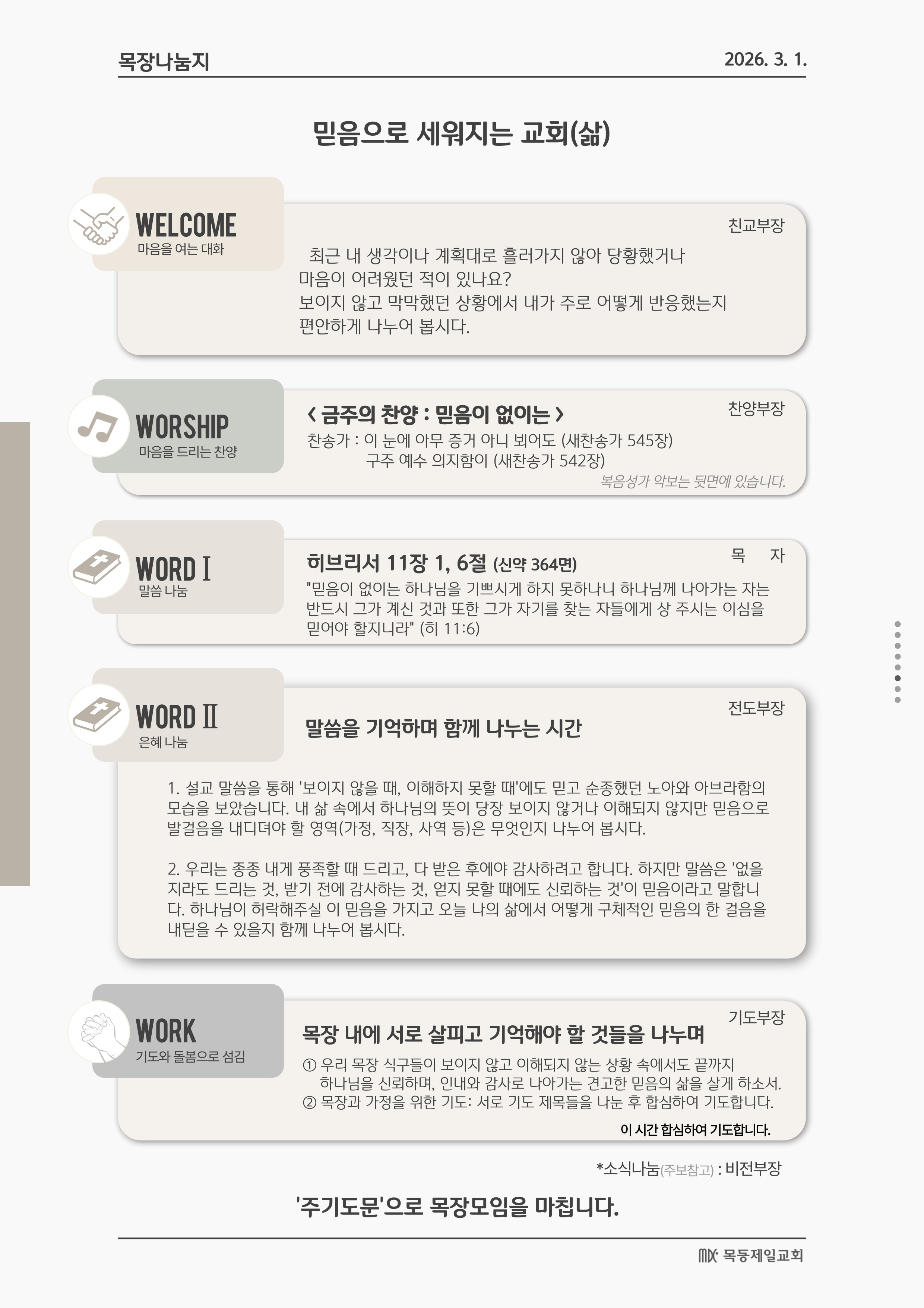 [2026 상반기 2호] 2026년 3월 8일 목장나눔지