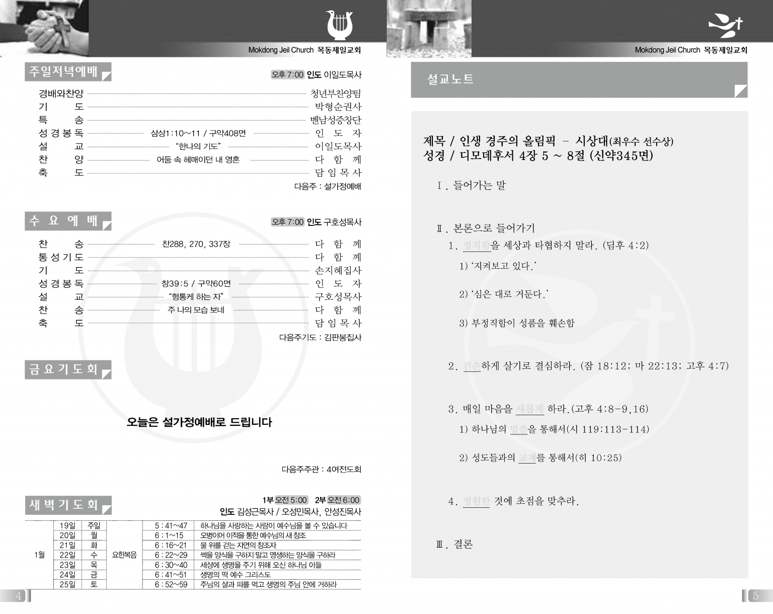(월~토 1부 05:00, 2부 06:00, 주일 05:00~05:30)