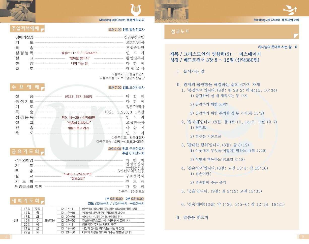 (월~토 1부 05:00, 2부 06:00, 주일 05:00~05:30)