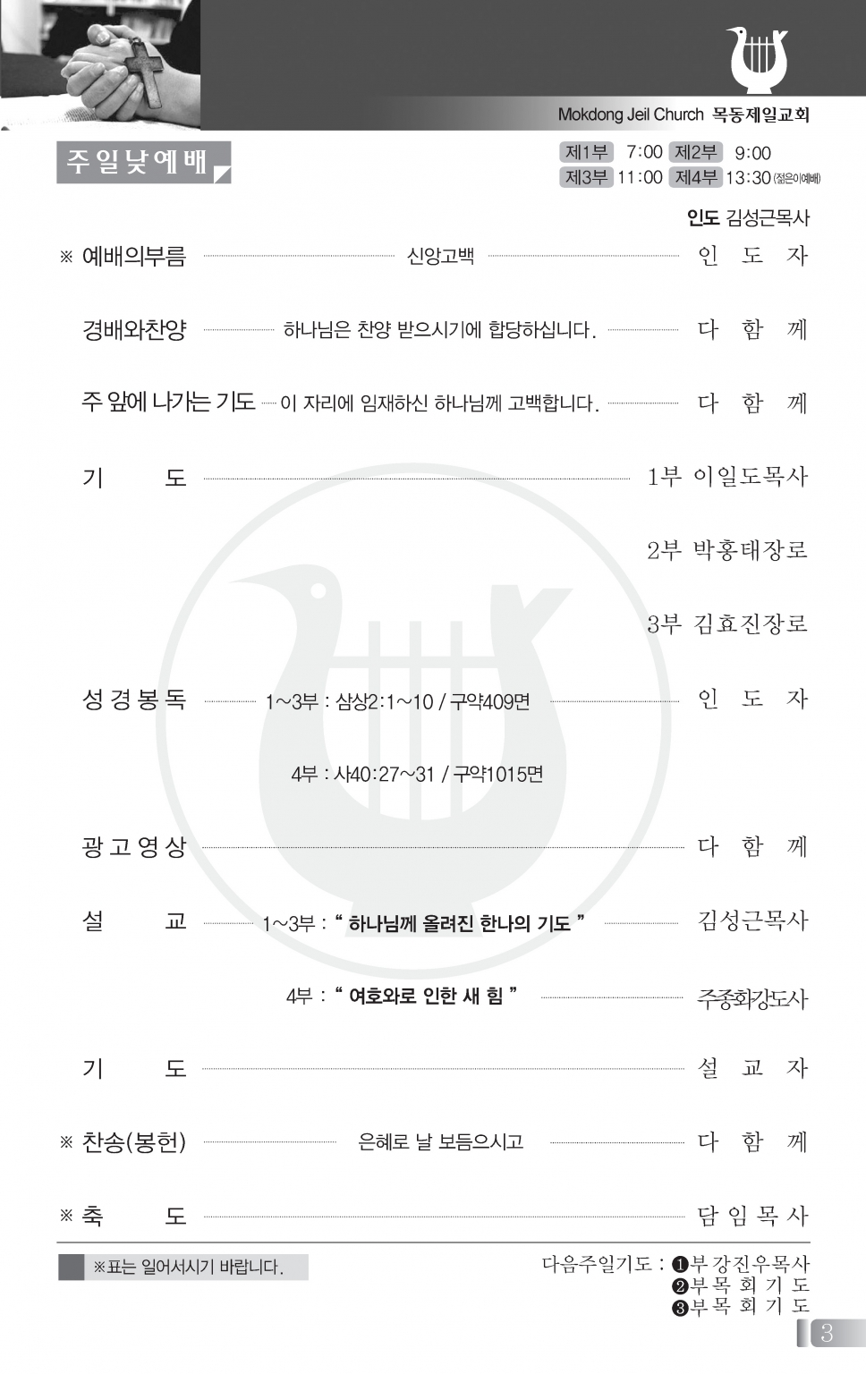 (주일 07:00 / 09:00 / 11:00 / 13:30)