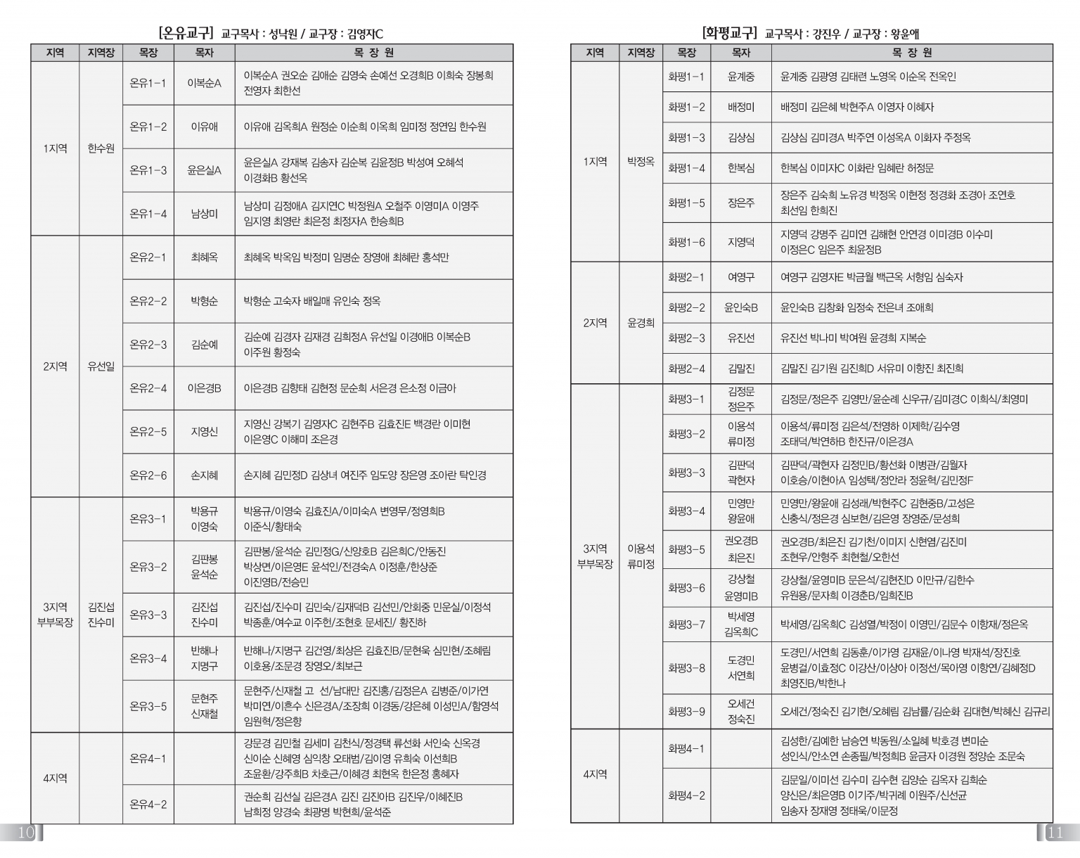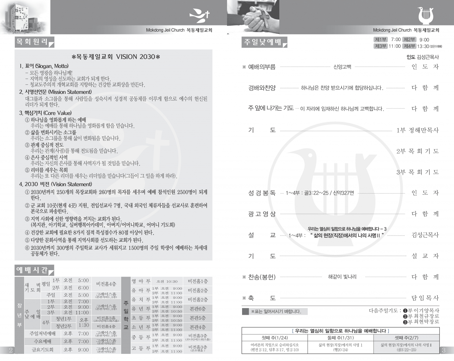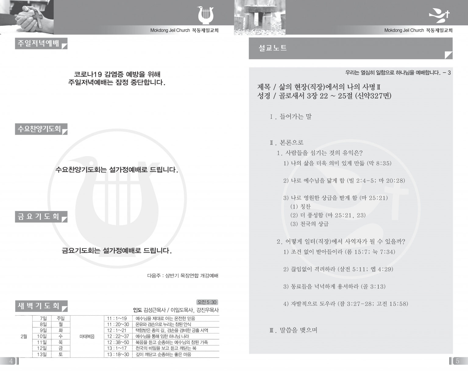 (월~토 1부 05:00, 2부 06:00, 주일 05:00~05:30)