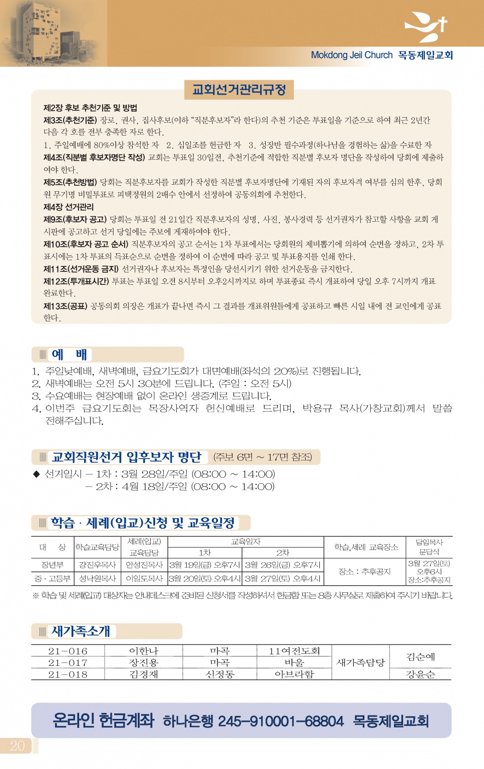 (월~토 1부 05:00, 2부 06:00, 주일 05:00~05:30)
