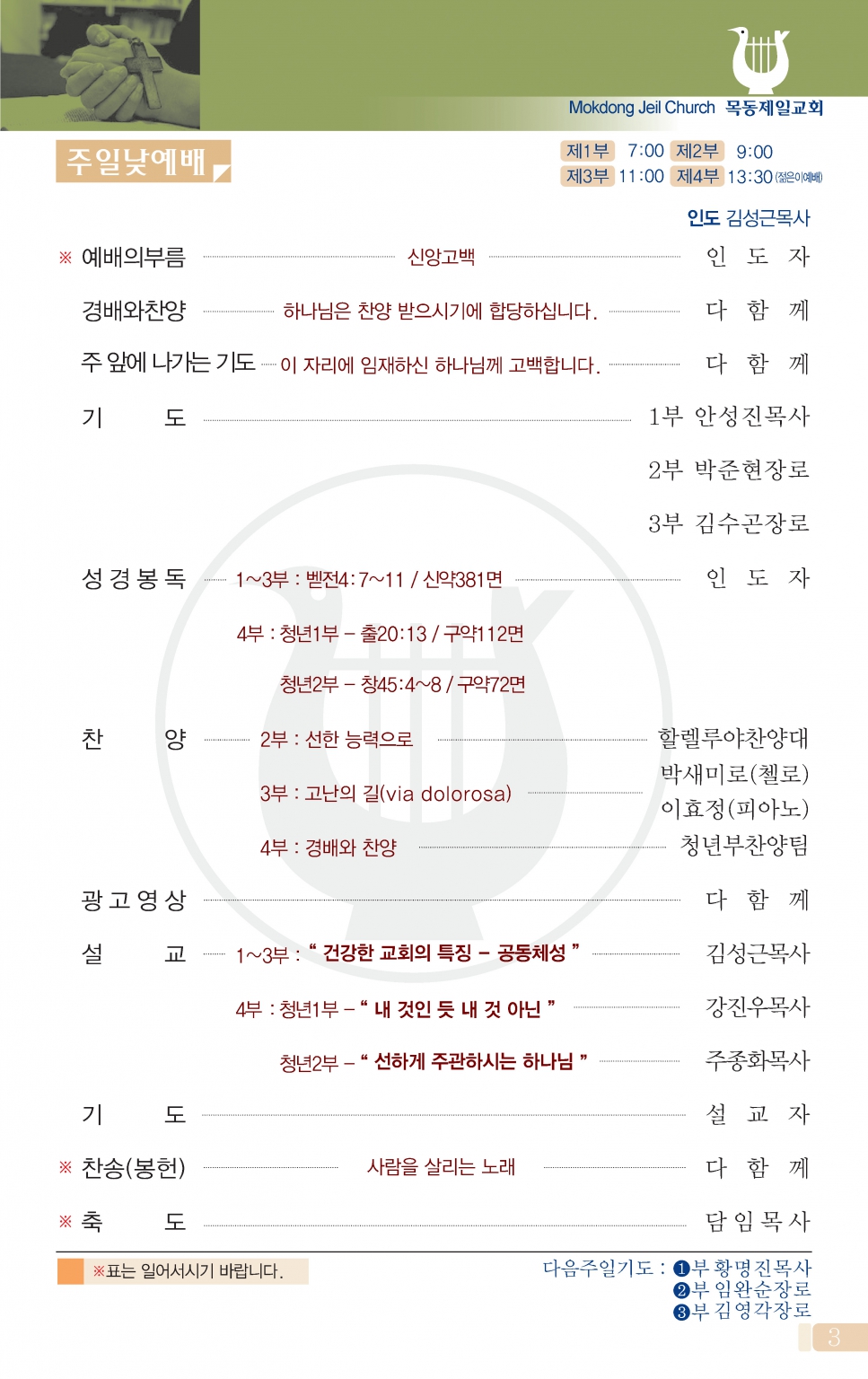 -주일1부, 2부, 3부, 4부예배