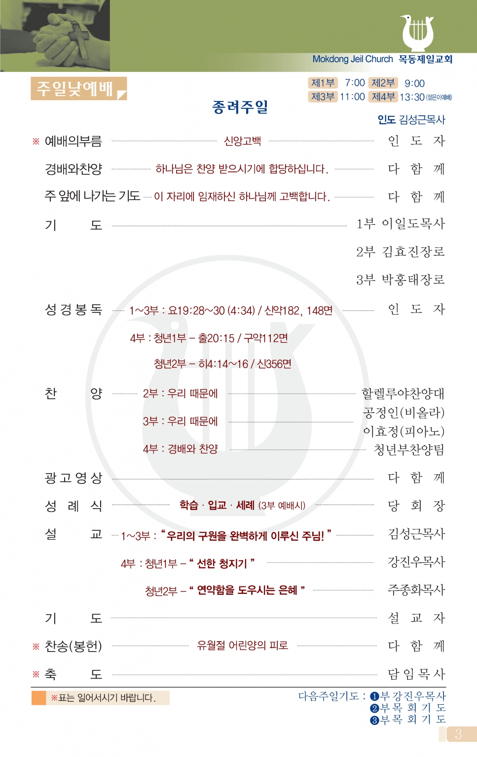 (주일 07:00 / 09:00 / 11:00 / 13:30)