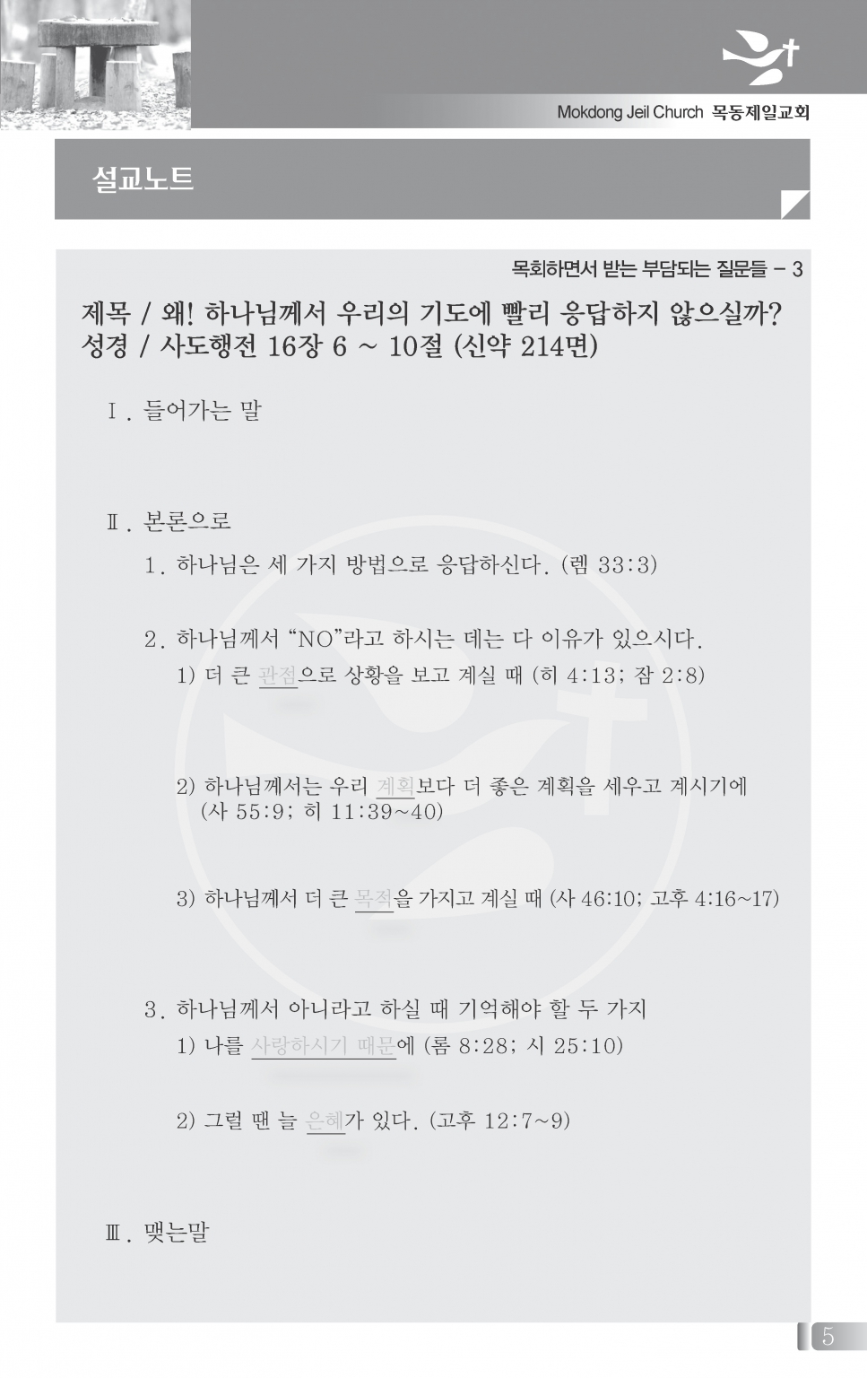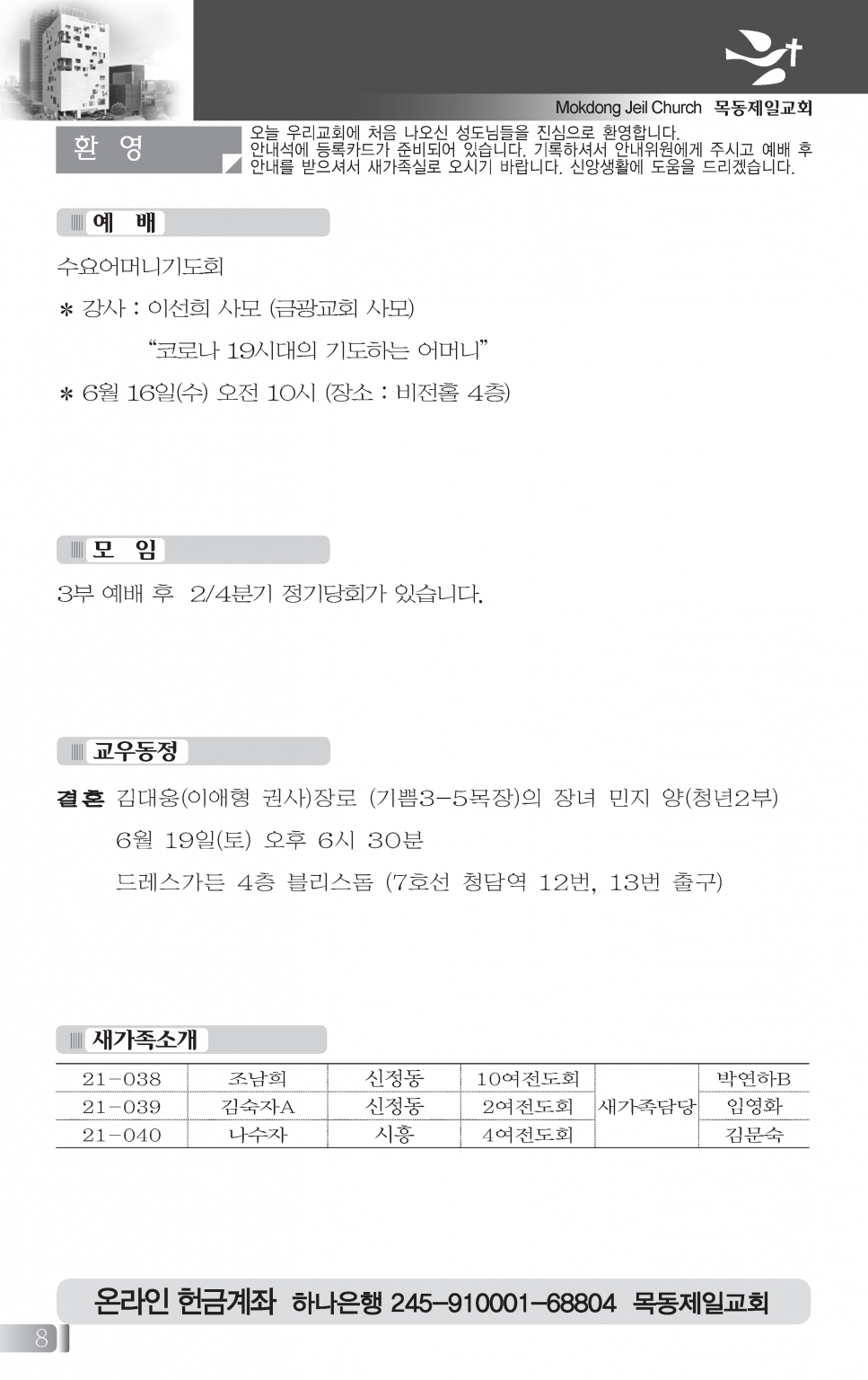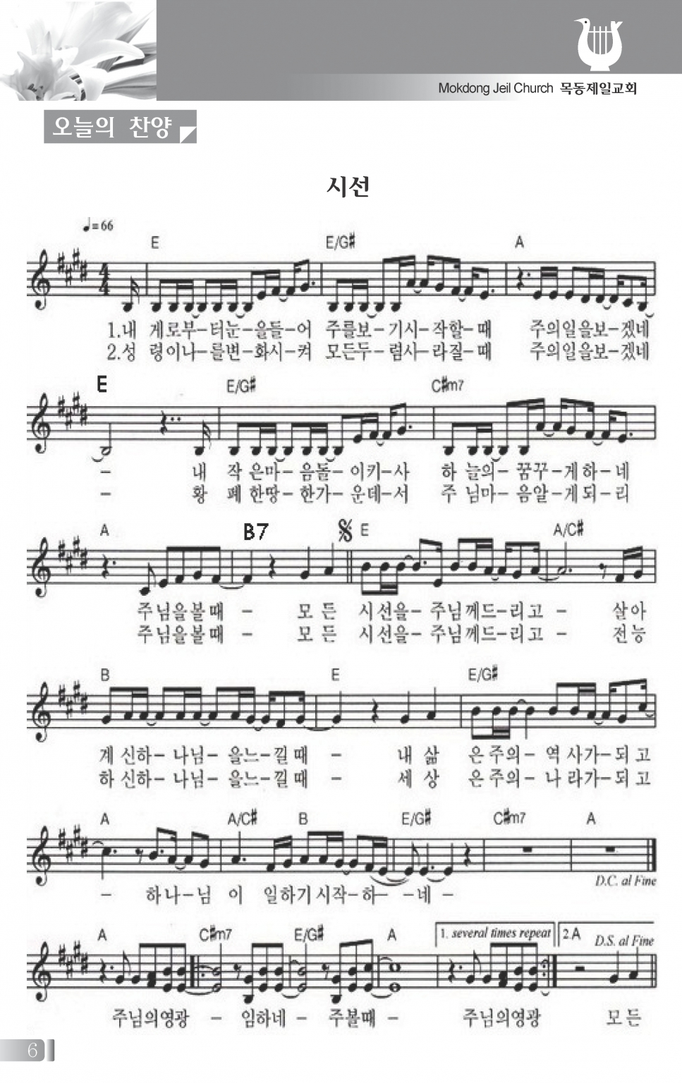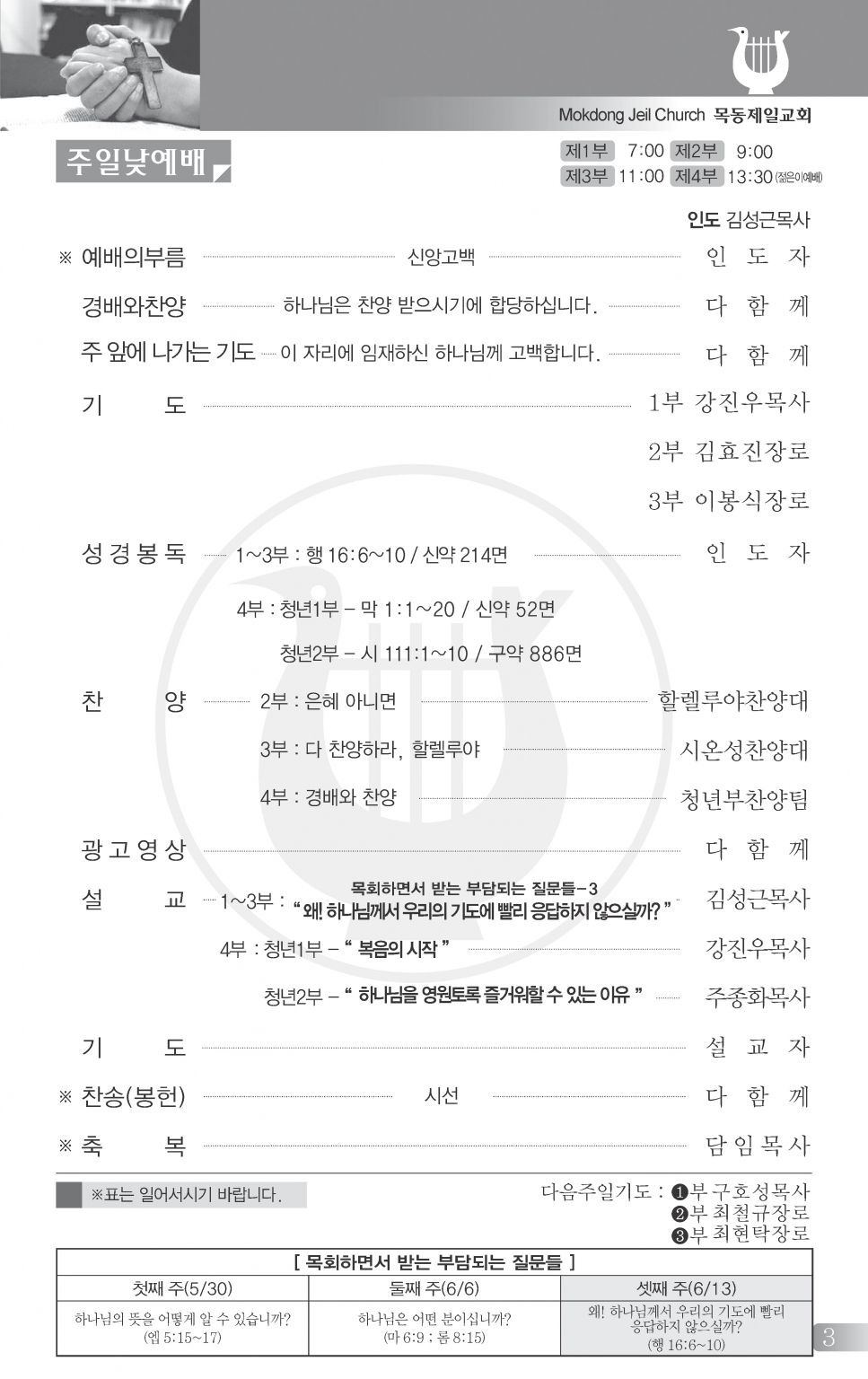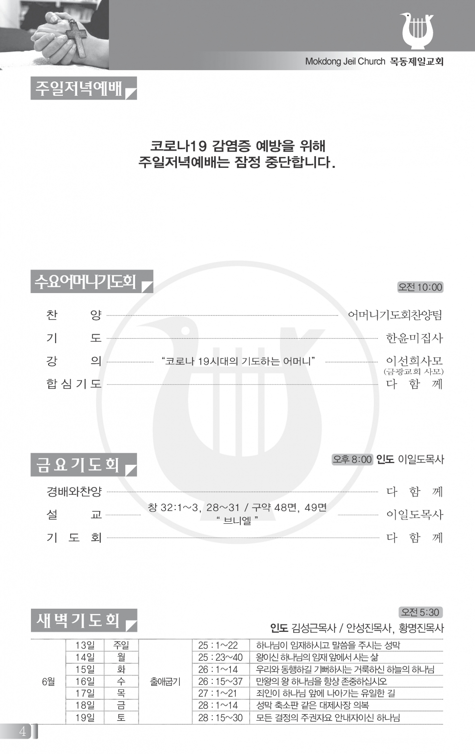 (월~토 1부 05:00, 2부 06:00, 주일 05:00~05:30)