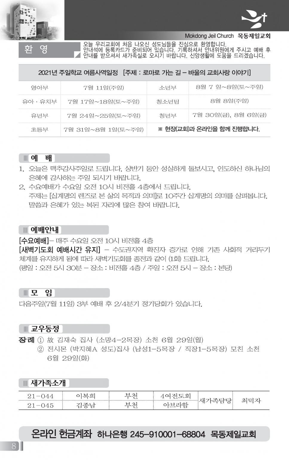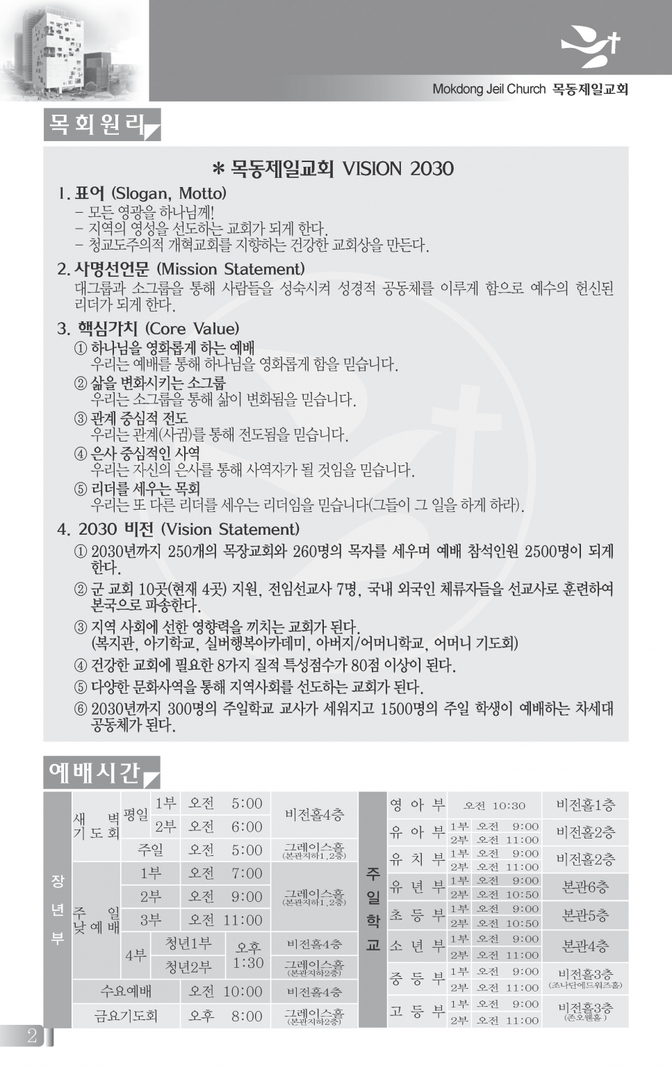 (월~토 1부 05:00, 2부 06:00, 주일 05:00~05:30)
