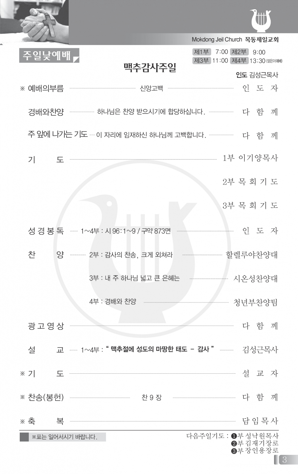 (주일 07:00 / 09:00 / 11:00 / 13:30)
