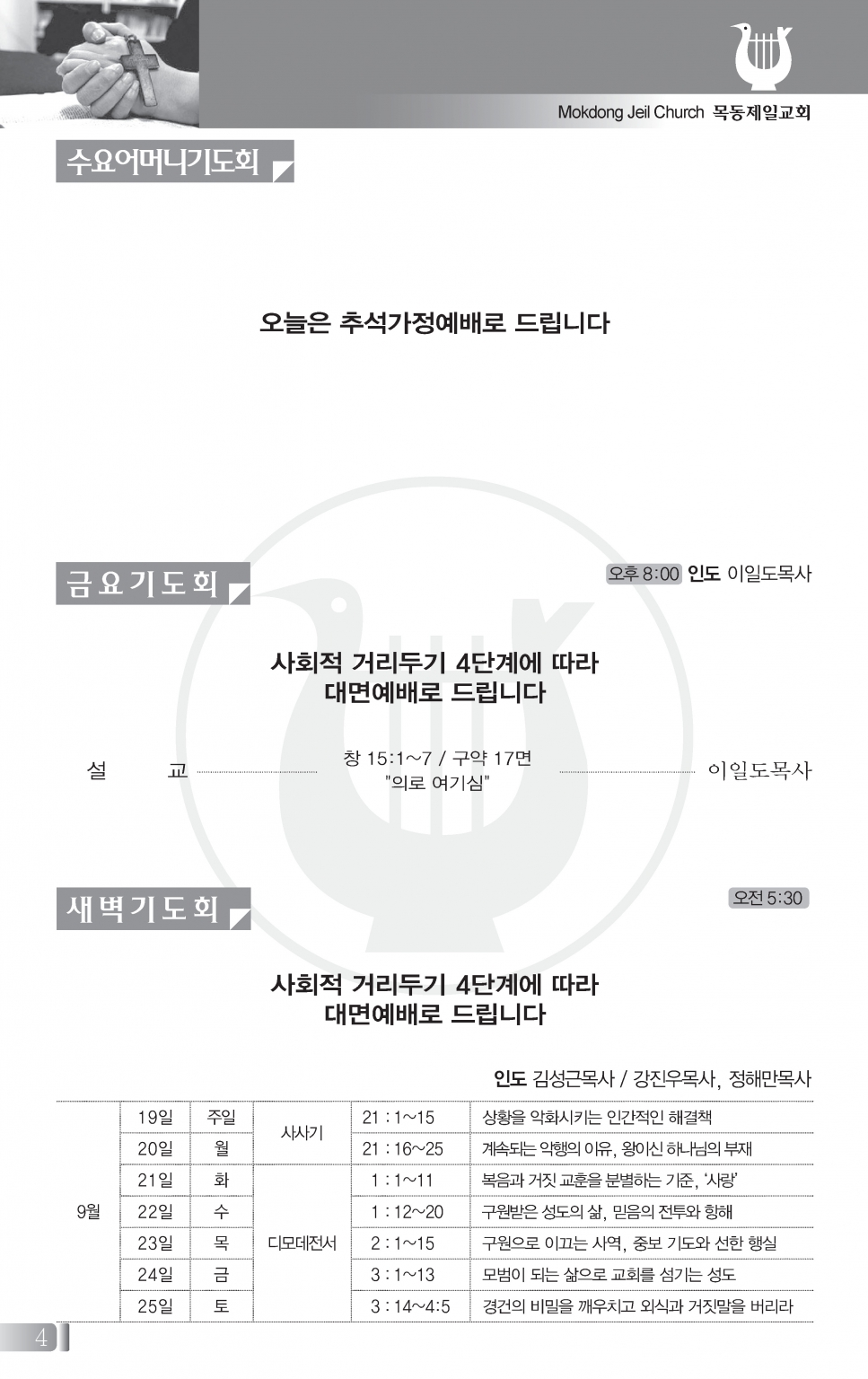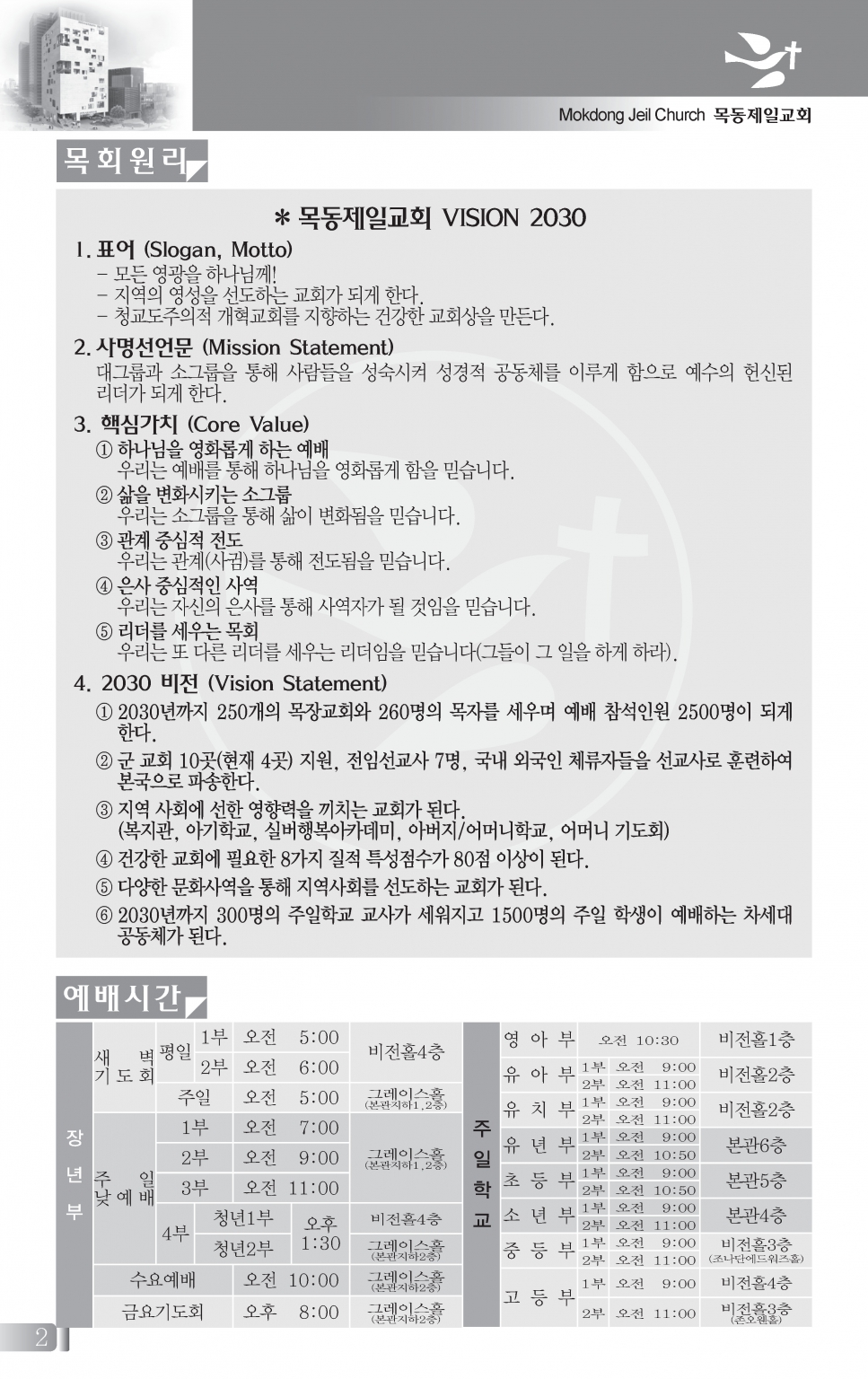 (월~토 1부 05:00, 2부 06:00, 주일 05:00~05:30)