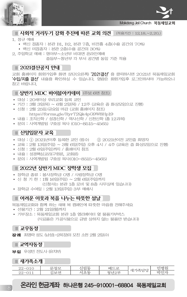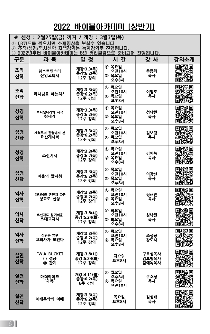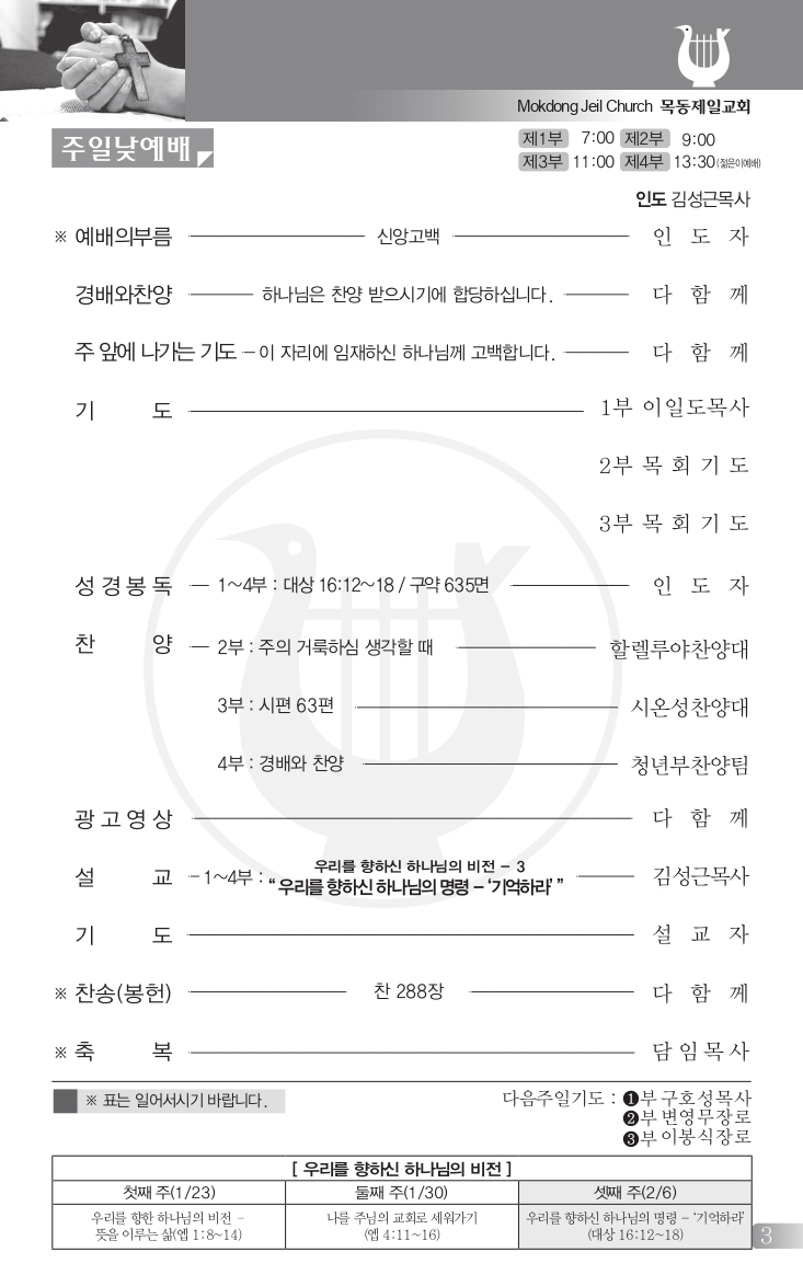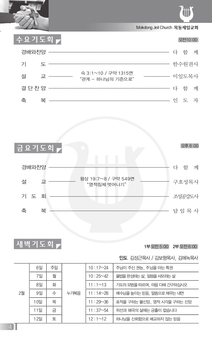 (월~토 1부 05:00, 2부 06:00, 주일 05:00~05:30)