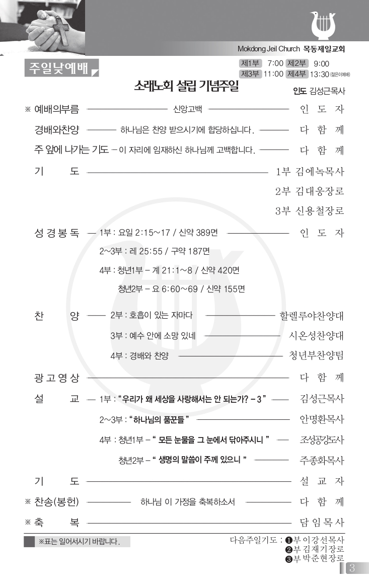 (주일 07:00 / 09:00 / 11:00 / 13:30)