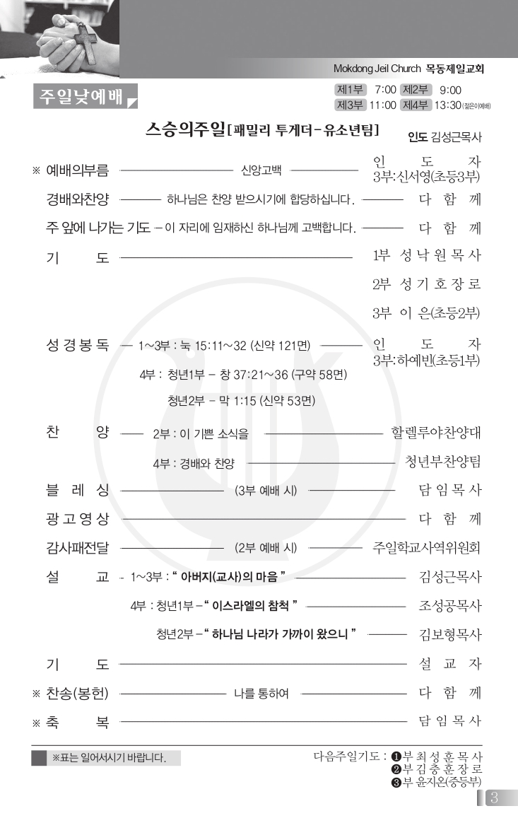 (주일 07:00 / 09:00 / 11:00 / 13:30)