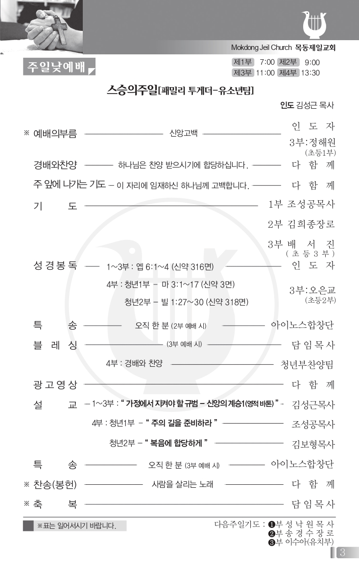 (주일 07:00 / 09:00 / 11:00 / 13:30)