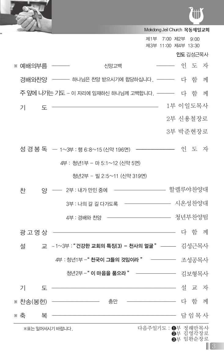 (주일 07:00 / 09:00 / 11:00 / 13:30)