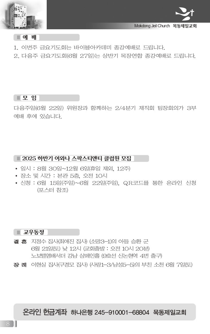 현재 위치: 홈1 / MDC TV2 / 말씀3 / 주일예배실황4 / 20250615_교회주보