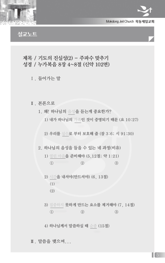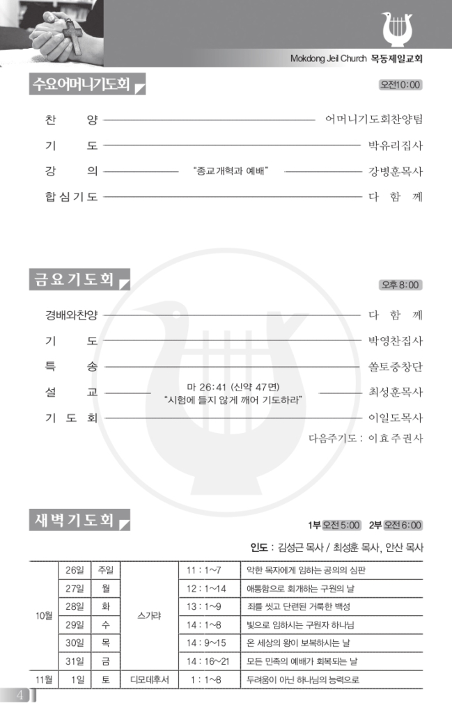 (월~토 1부 05:00, 2부 06:00, 주일 05:00~05:30)