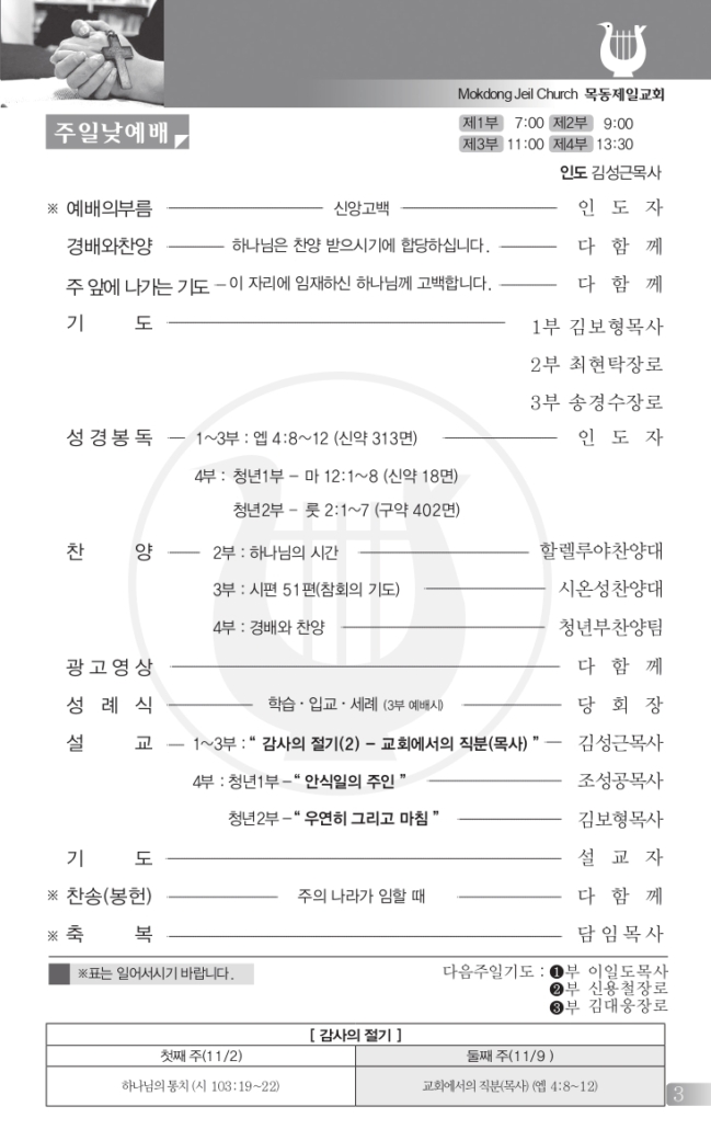 (주일 07:00 / 09:00 / 11:00 / 13:30)