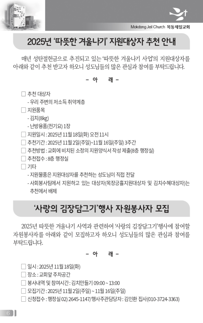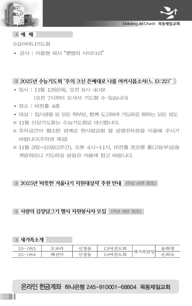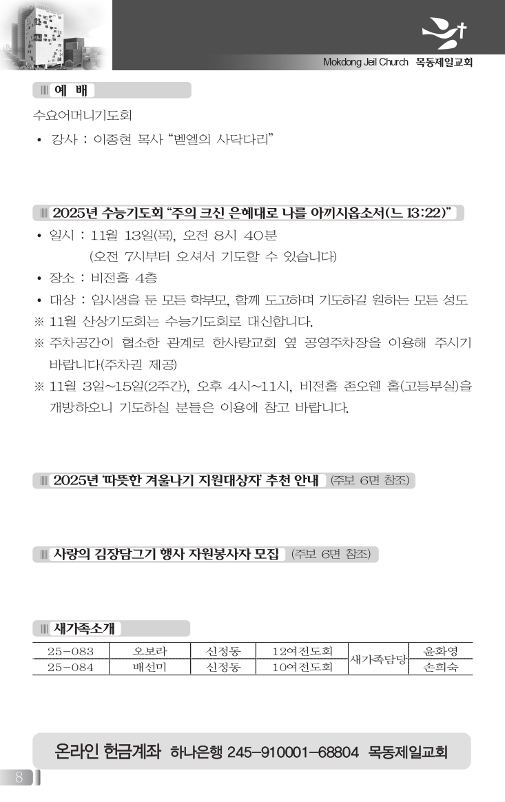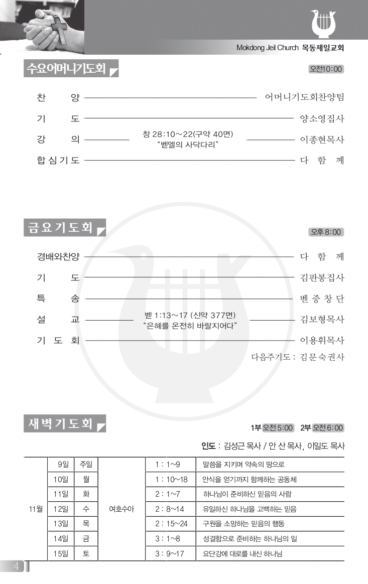 (월~토 1부 05:00, 2부 06:00, 주일 05:00~05:30)