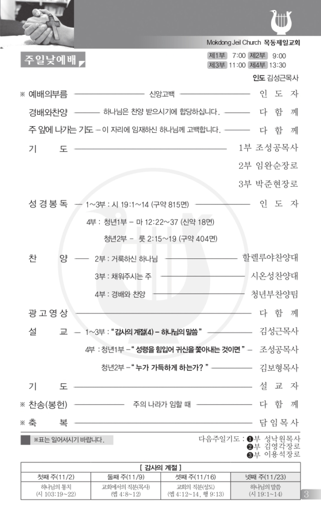(주일 07:00 / 09:00 / 11:00 / 13:30)