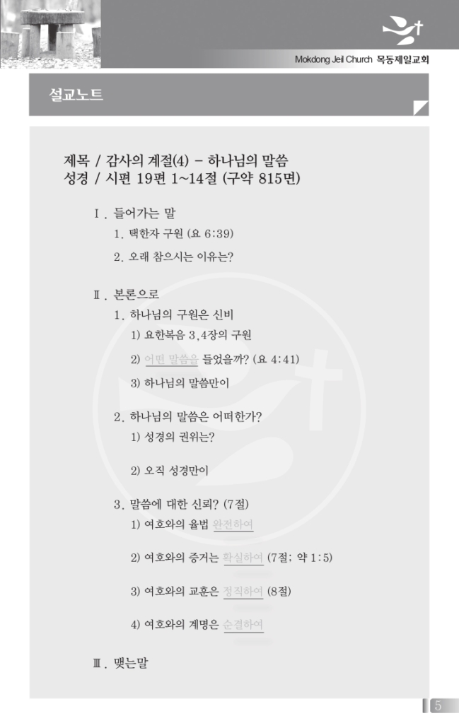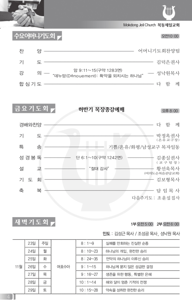 (월~토 1부 05:00, 2부 06:00, 주일 05:00~05:30)