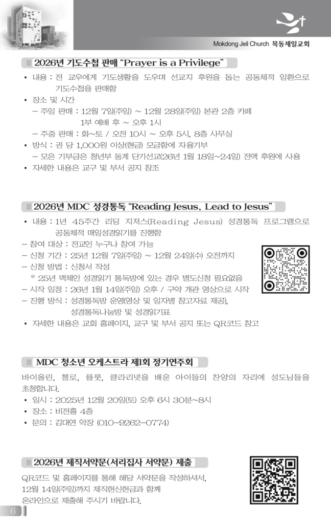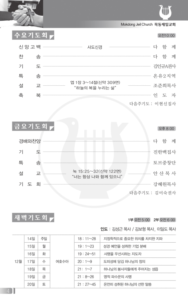 (월~토 1부 05:00, 2부 06:00, 주일 05:00~05:30)