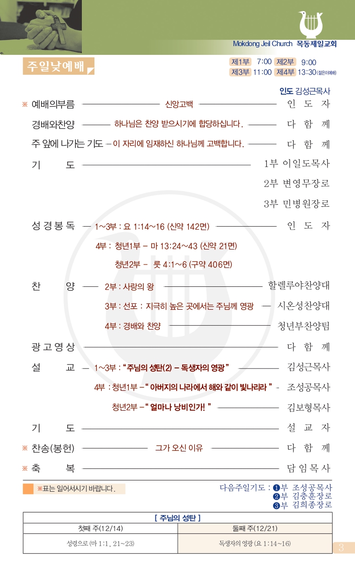 -주일1부, 2부, 3부, 4부예배
