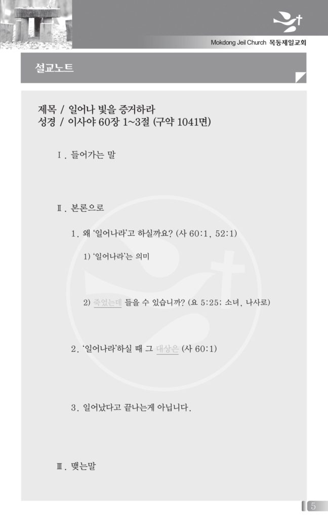 (월~토 1부 05:00, 2부 06:00, 주일 05:00~05:30)