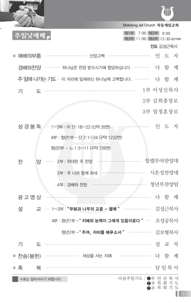 -주일1부, 2부, 3부, 4부예배