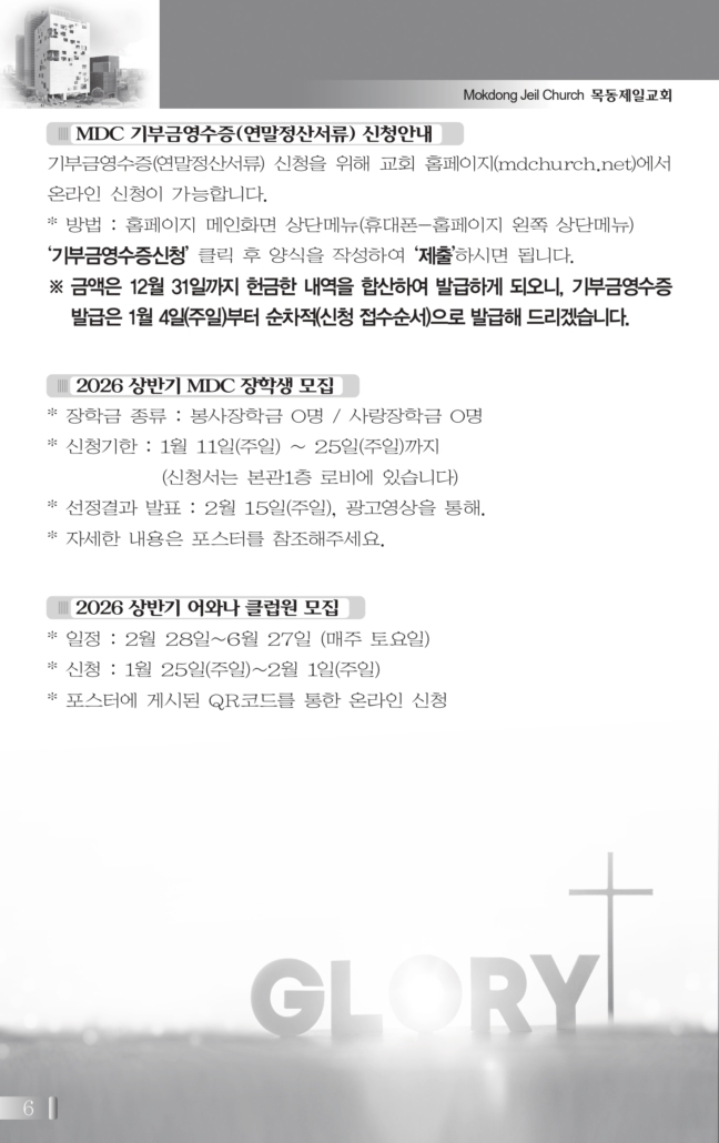 (월~토 1부 05:00, 2부 06:00, 주일 05:00~05:30)